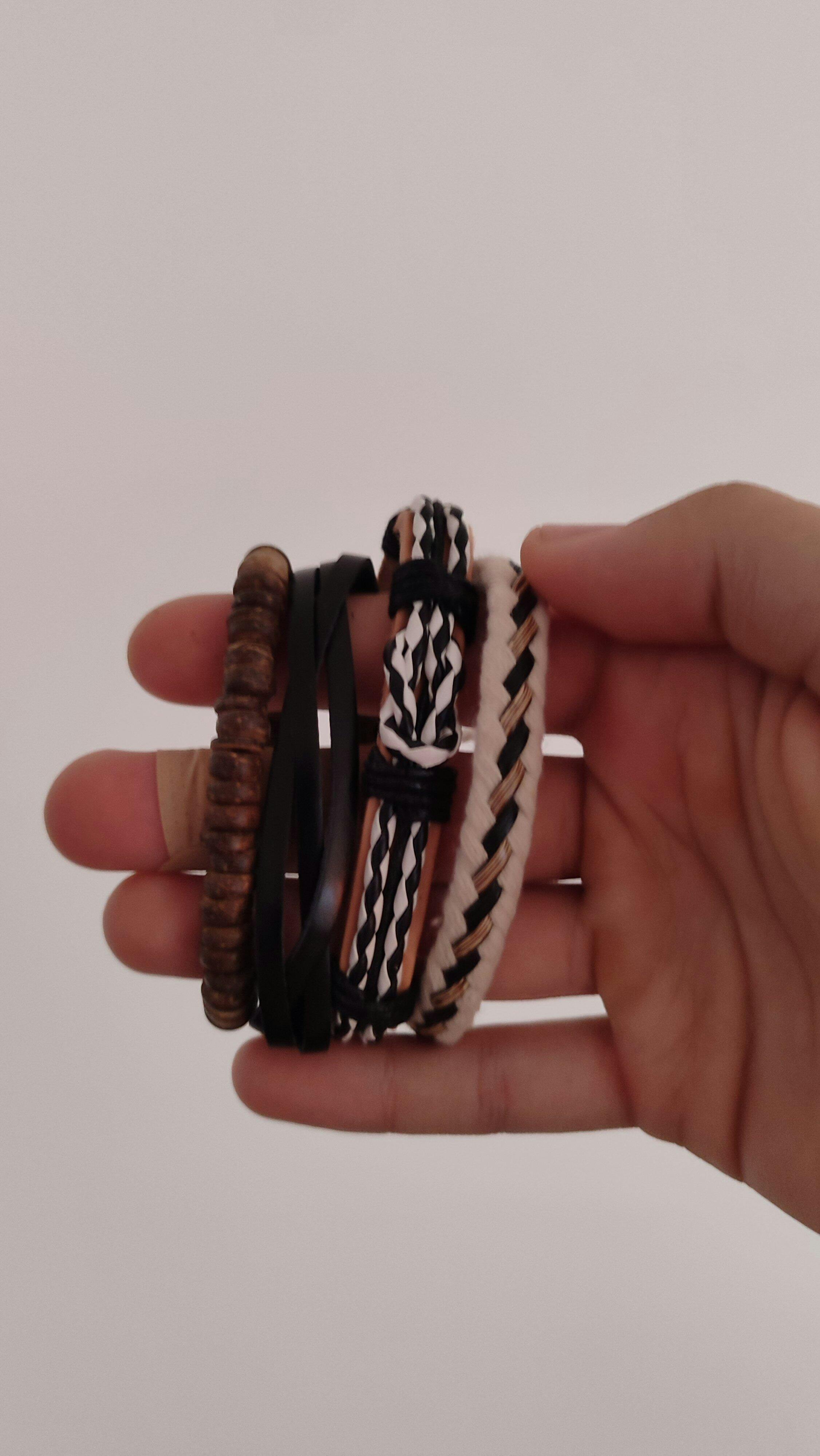 Narukvica izrađena od prirodne kože sa četiri različita elementa.