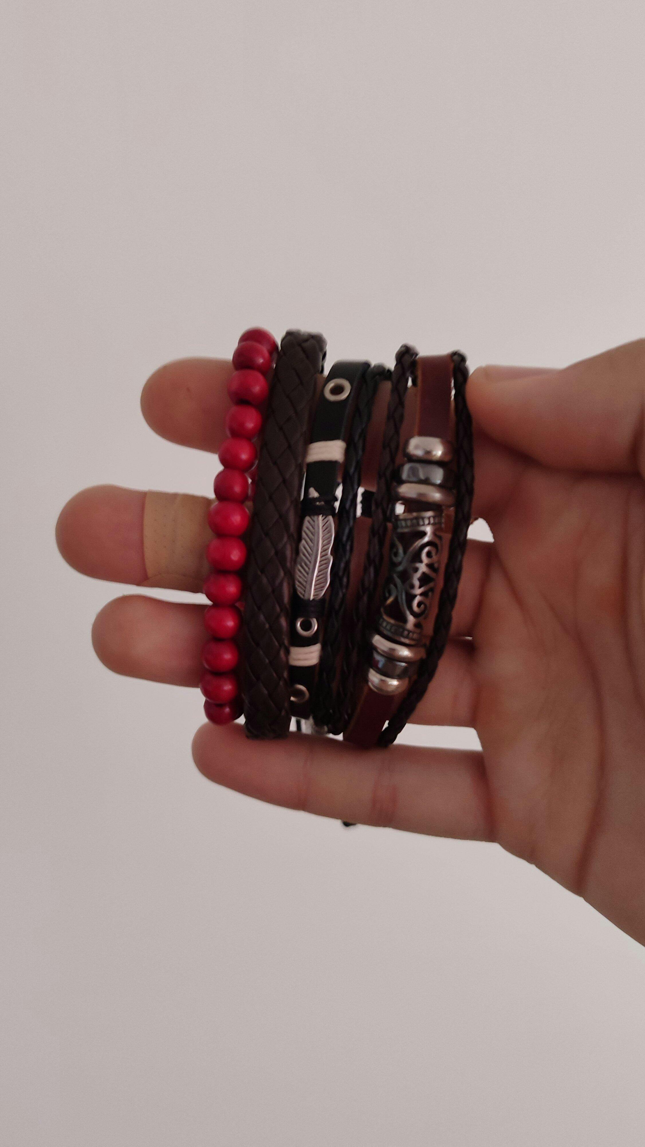 Narukvica izrađena od prirodne kože sa četiri različita elementa.